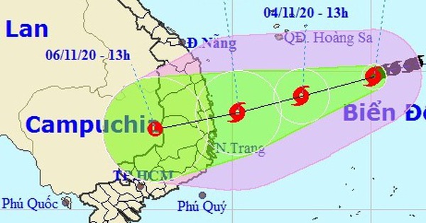 Dự báo trong 24 giờ tới, bão số 10 di chuyển theo hướng Tây Tây Nam, mỗi giờ đi được 10-15 km. Đến 13 giờ ngày 4-11, vị trí tâm bão ở khoảng 14,1 độ Vĩ Bắc; 112,5 độ Kinh Đông, cách quần đảo Hoàng Sa khoảng 300 km về phía Nam. Sức gió mạnh nhất vùng gần tâm bão số 10 mạnh cấp 8-9 (60-90 km/giờ), giật cấp 11.