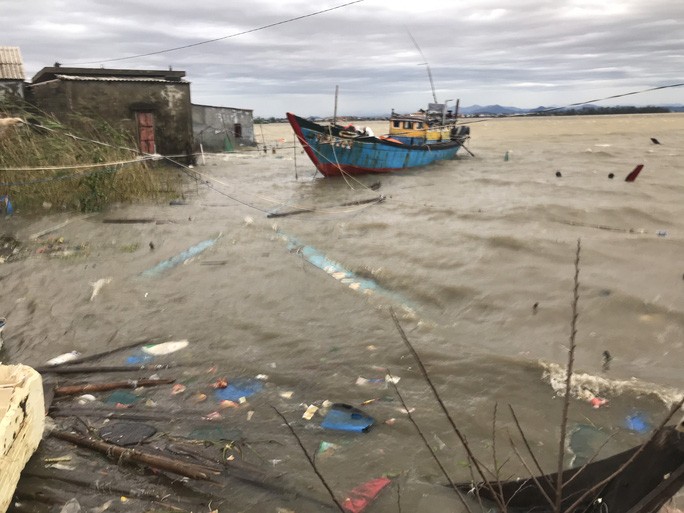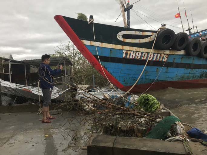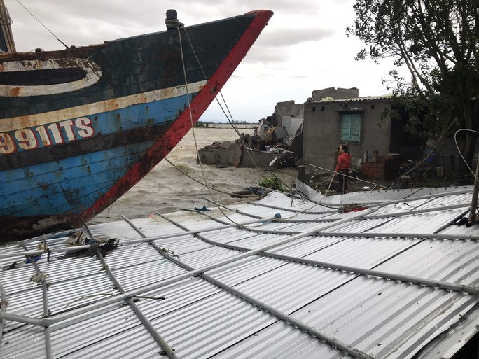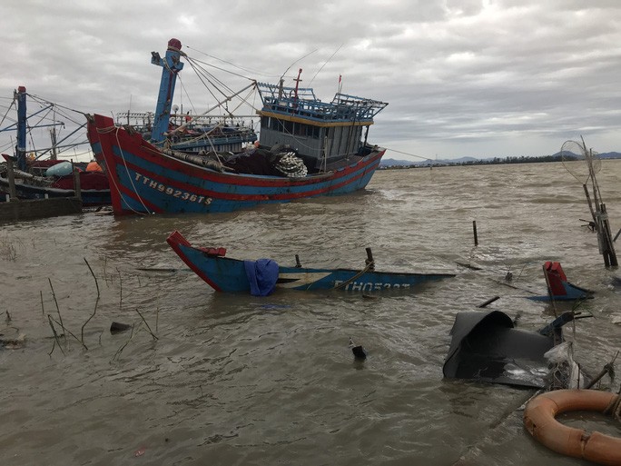 Vào lúc 3 giờ 30, gió mạnh khiến chiếc tàu cá TTH 99911TS bị đứt néo khi đang neo đậu ở phá Tam Giang đoạn qua tổ dân phố Hải Tiến, thị trấn Thuận An, huyện Phú Vang. Chiếc tàu đâm sầm vào căn nhà bà Lê Thị Xuyên ở gần đó khiến căn nhà bị sập đổ hoàn toàn. Chiếc tàu bị mắc kẹt. Rất may lúc này nhà không có người. Vào thời điểm này cũng có nhiều tàu cá neo đậu tại đây bị đứt dây, đâm vào bờ.