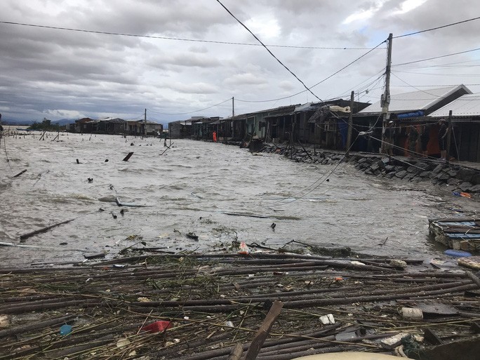 Trong suốt 4 giờ qua, ở khu vực này gió liên tục và rất mạnh, nước biển dâng cao khiến nhiều khu vực thấp trũng bị ngập. Lúc 1 giờ, vị trí tâm bão vào khoảng 16.6oN; 108.5oE, cách Đà Nẵng khoảng 60km, Thừa Thiên - Huế khoảng 110 km, Quảng Trị khoảng 155 km. Sức gió mạnh nhất cấp 9-10 (75-100km/h), giật cấp 12.