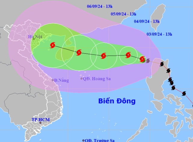 Dự báo, đến 13 giờ ngày 4-9, vị trí tâm bão Yagi ở vào khoảng 19,1 độ Vĩ Bắc; 117,4 độ Kinh Đông, cách đảo Hải Nam (Trung Quốc) khoảng 740 km về phía Đông. Sức gió mạnh nhất vùng gần tâm bão mạnh cấp 10, cấp 11, giật cấp 13, di chuyển theo hướng Tây Tây Bắc, khoảng 10 km/giờ và di chuyển vào Biển Đông.