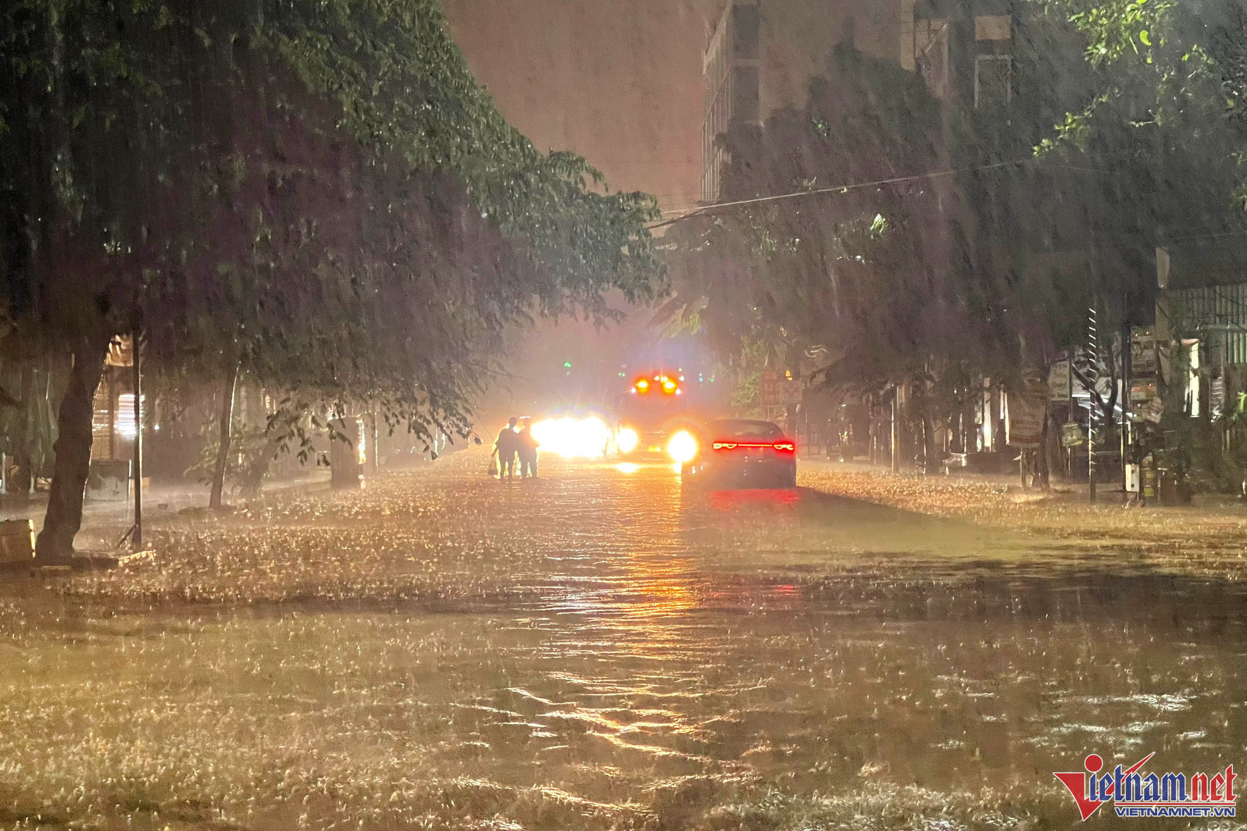 Nhiều người phải đi lên vỉa hè hoặc vào trú tạm tại nhà dân ven đường để tránh nguy hiểm.