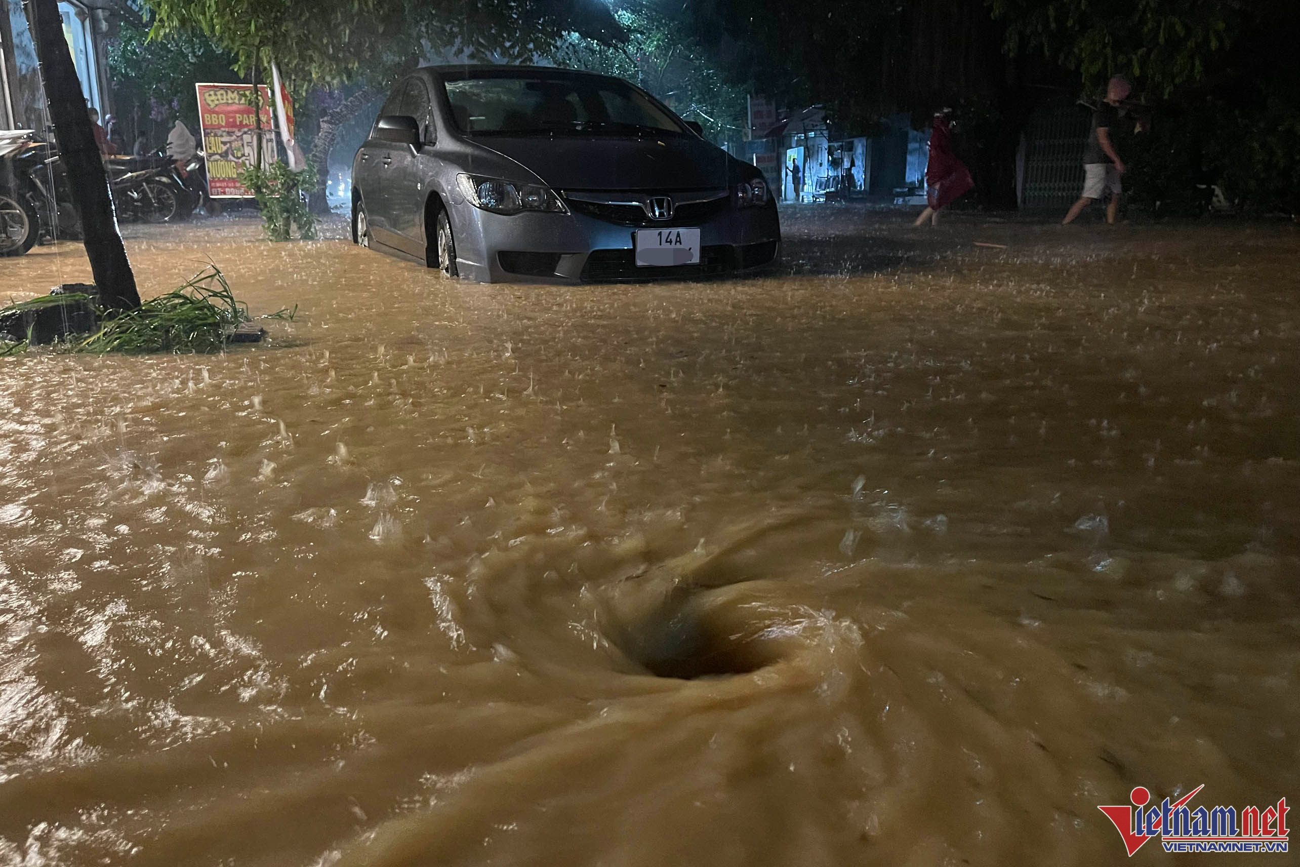 Ghi nhận tại TP Hạ Long, Quảng Ninh, cơn mưa lớn khiến nhiều tuyến đường tại khu du lịch Bãi Cháy chìm trong biển nước. Nhiều ô tô và xe máy chết máy dừng giữa đường để chờ cứu hộ.
