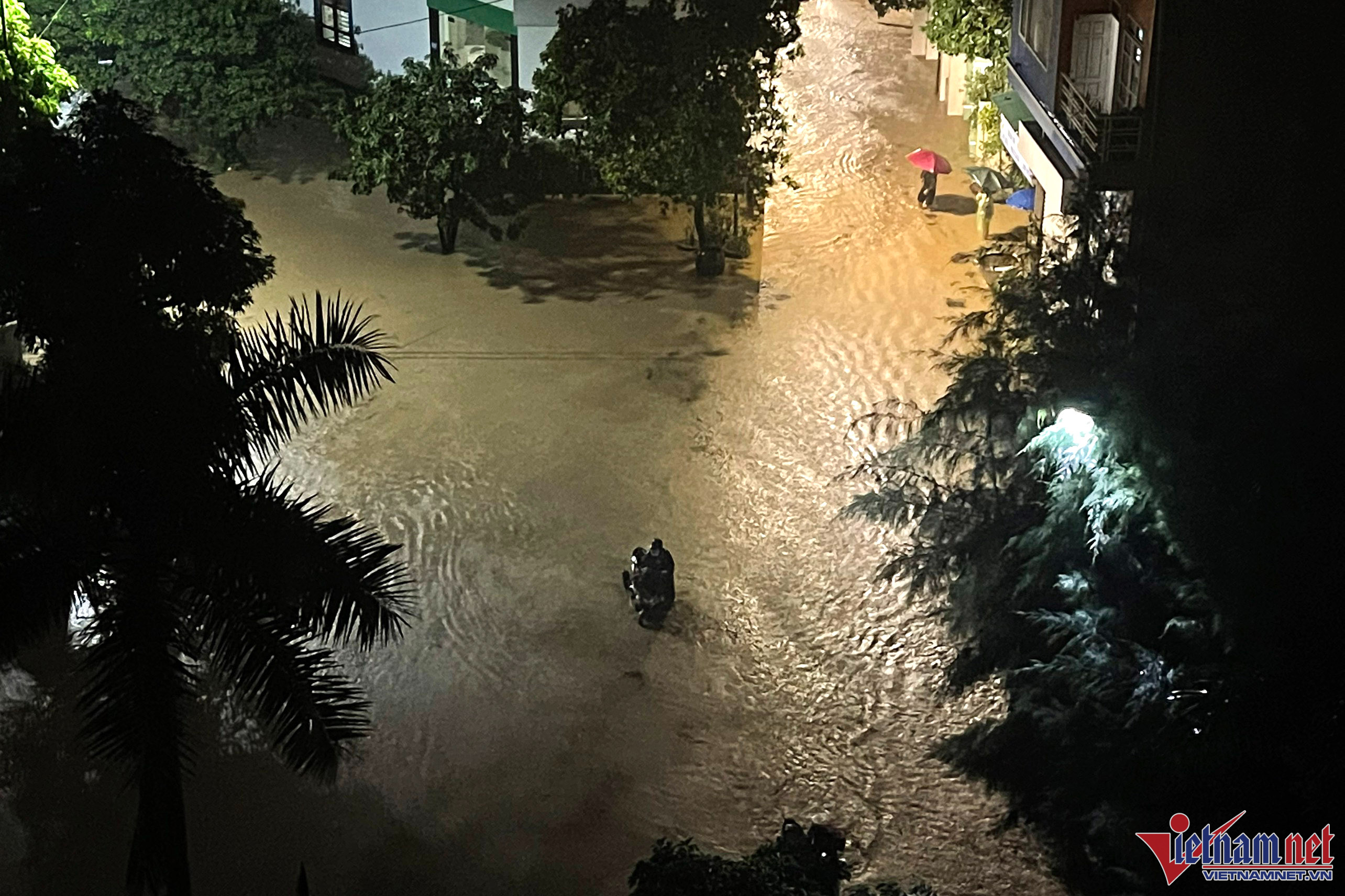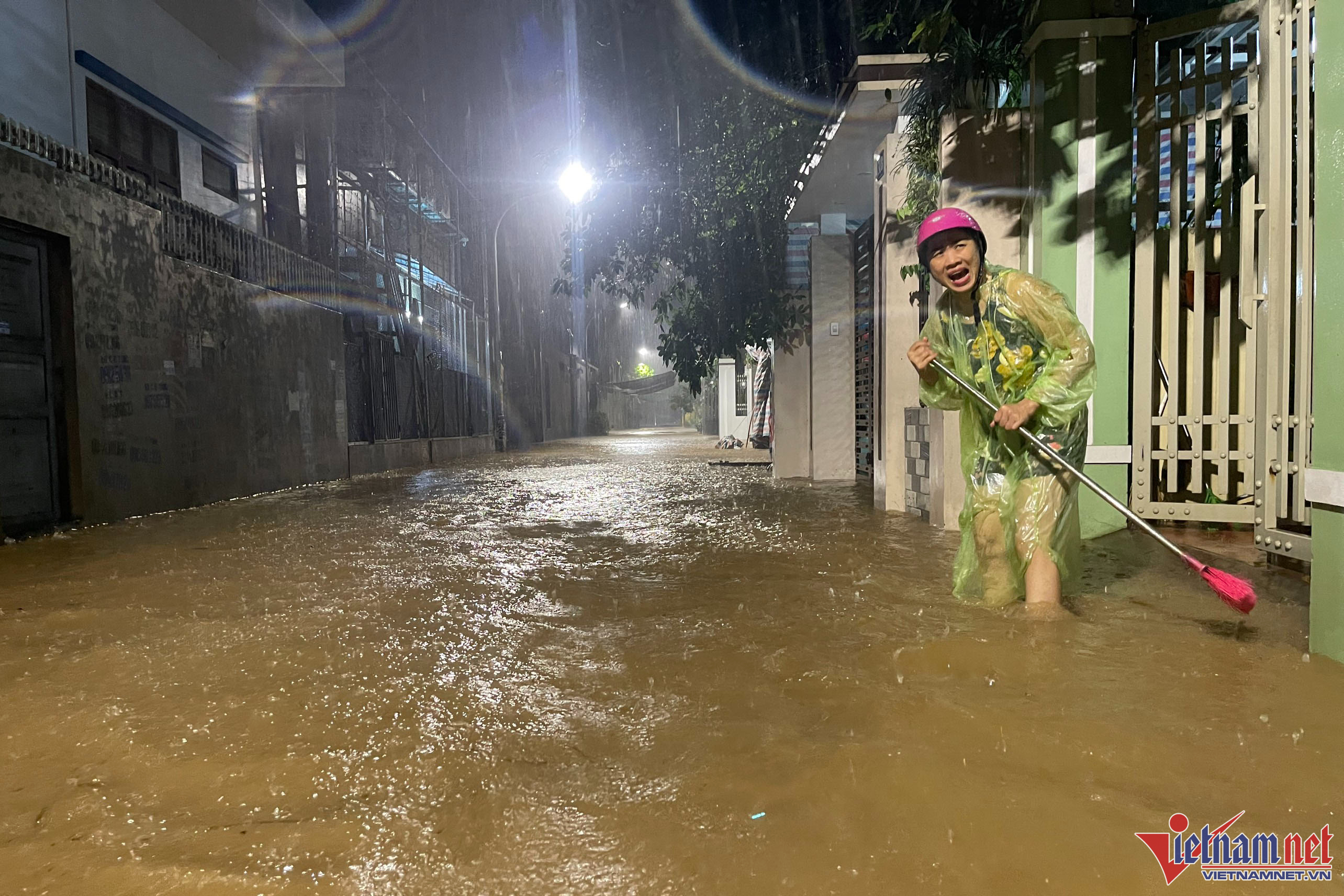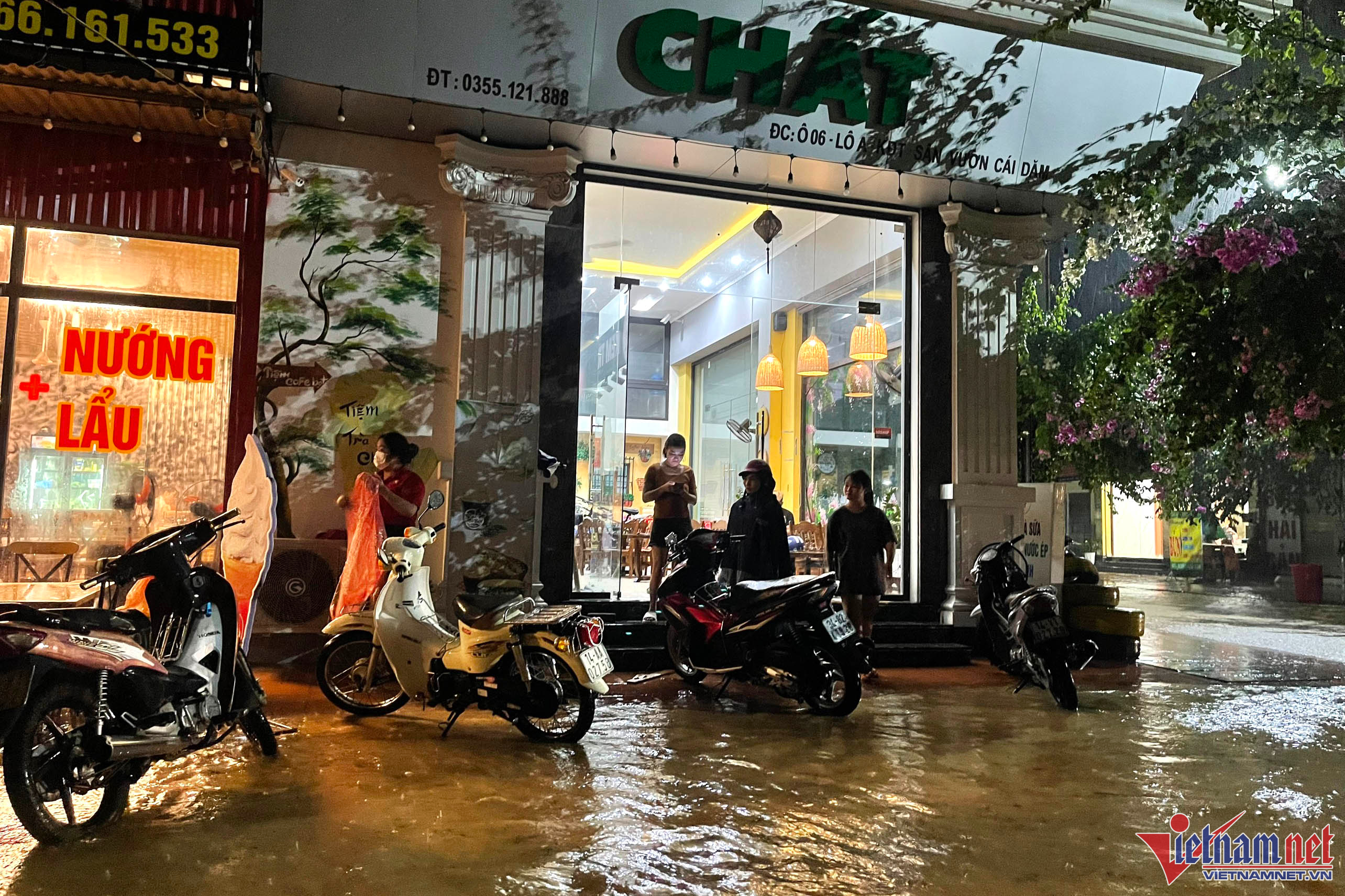 Tại khu vực Cái Dăm (phường Bãi Cháy) nước ngập tới đầu gối, nhiều người dân lo sợ nước ngập vào nhà nên đã thức để canh.