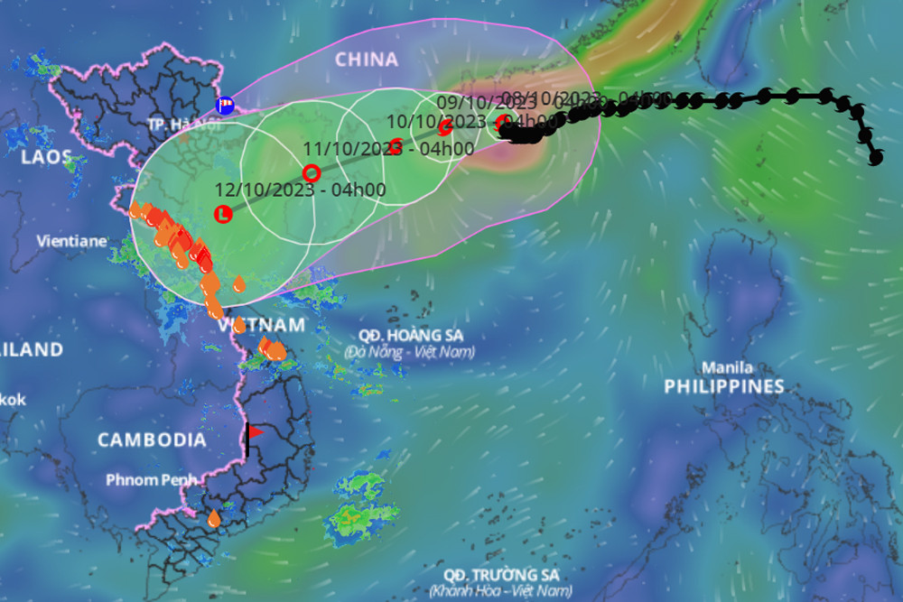 08/10/2023 13:48Bão số 4 giật cấp 16 di chuyển chậm, hướng vào Vịnh Bắc Bộ