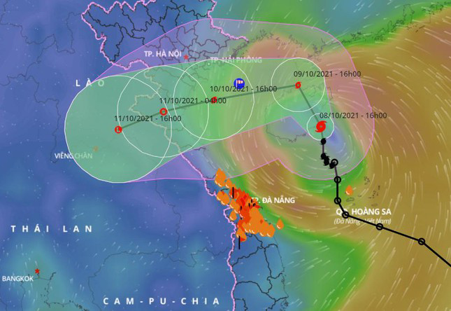 Theo Trung tâm Dự báo Khí tượng và Thủy văn quốc gia, vào hồi 16 giờ ngày 8/10, vị trí tâm bão ở vào khoảng 18,7 độ Vĩ Bắc; 110,6 độ Kinh Đông, trên vùng biển phía Đông Nam đảo Hải Nam (Trung Quốc). Sức gió mạnh nhất vùng gần tâm bão mạnh cấp 8-9 (60-90km/giờ), giật cấp 11. Bán kính gió mạnh cấp 6, giật cấp 8 khoảng 150km tính từ tâm bão.