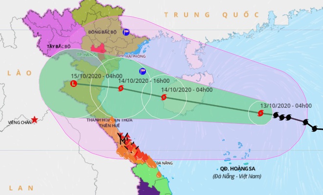 13/10/2020 16:22Bão số 7 giật cấp 11 hướng thẳng vào Bắc Bộ, Bắc Trung Bộ