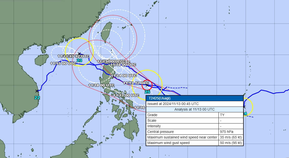 Ngoài ra, theo bản tin bão mới nhất từ Cơ quan Khí tượng Nhật Bản (JMA), hai cơn bão Usagi và Man-yi nối đuôi nhau hoạt động, dự báo tác động tới Philippines, có khả năng vào Biển Đông.