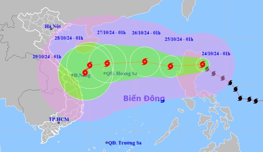 Nhận định về cơn bão này, TS Nguyễn Ngọc Huy, chuyên gia thời tiết dự báo bão sẽ đi vào khu vực biển Đông của Việt Nam trong ngày hôm nay (24/10) và sẽ mạnh lên với vận tốc gió gần tâm bão 100km/h khi bão tiến vào khu vực quần đảo Hoàng Sa vào ngày 25 hoặc 26/10.
