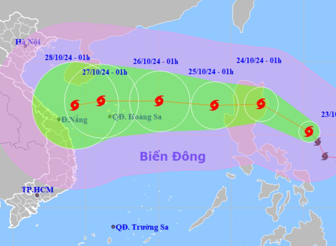 23/10/2024 14:40Bão Trami đang di chuyển rất nhanh, hướng vào Trung Bộ, sẽ gây mưa rất to