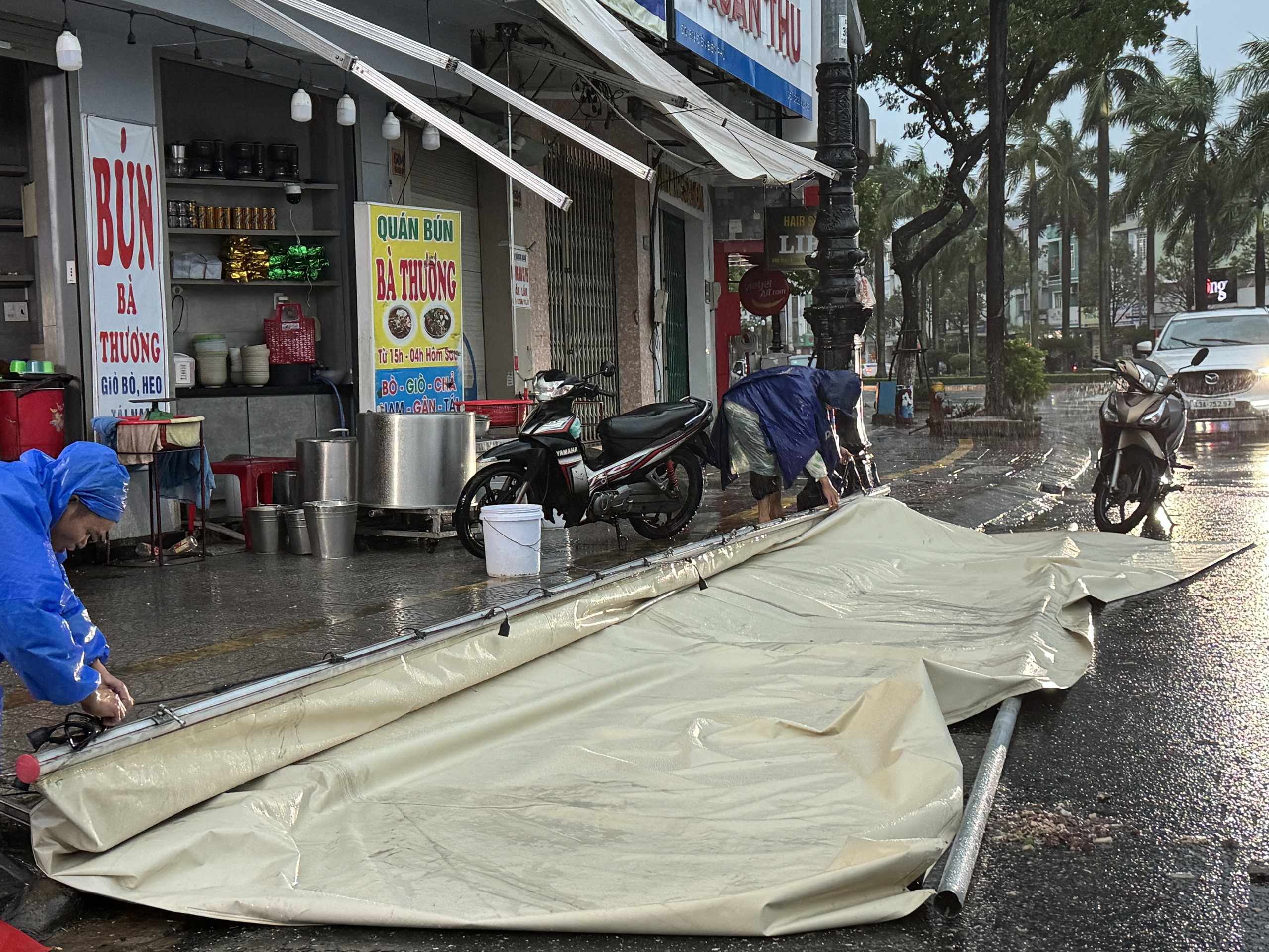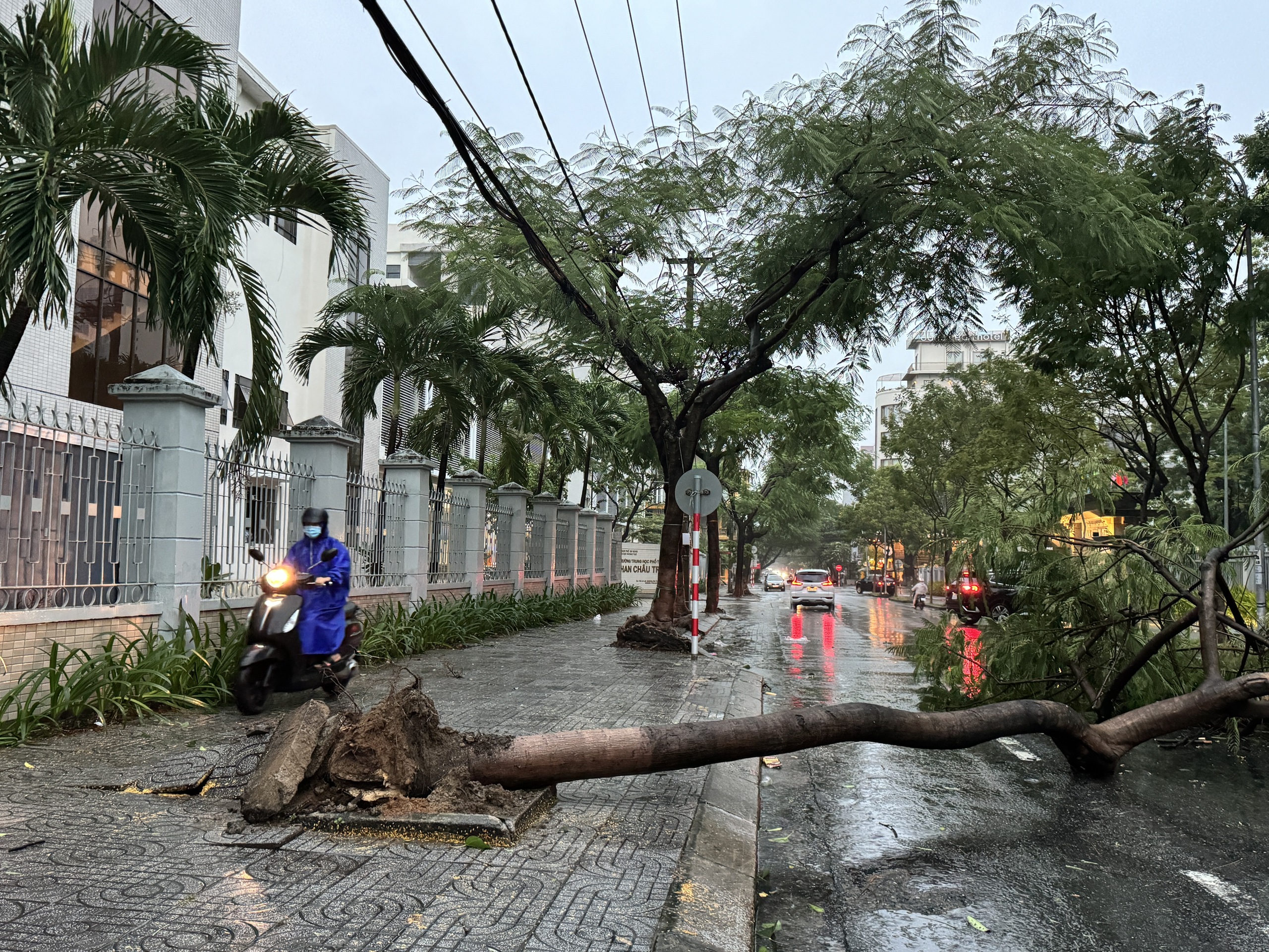 Do ảnh hưởng của gió, nhiều bảng quảng cáo, bạt che mưa,… bị cuốn bay. Một số khu vực có cây ngã đổ.