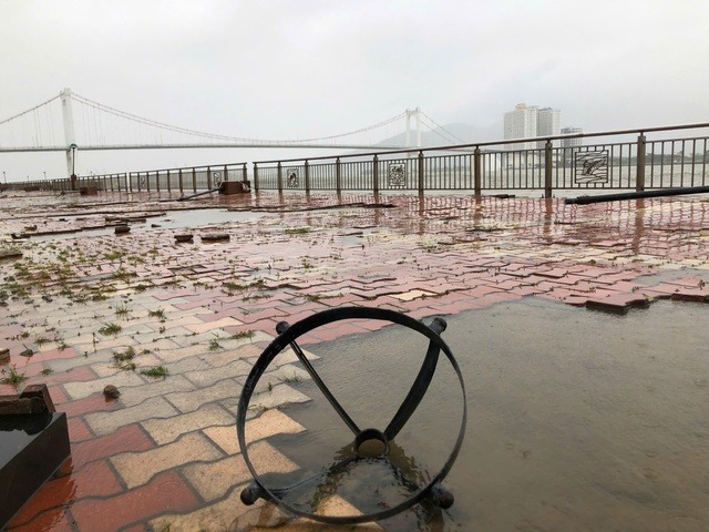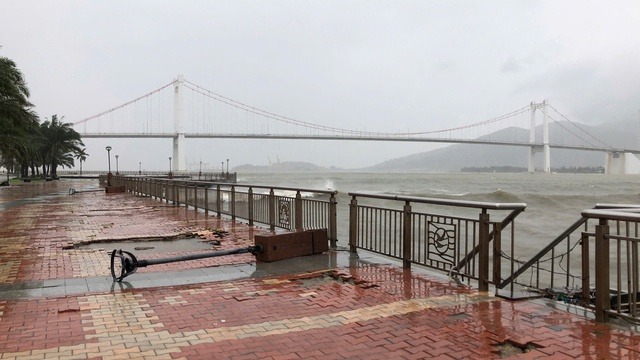 Ghi nhận của phóng viên lúc 10 giờ 45, tại khu vực đường Như Nguyệt nằm ngay cửa sông Hàn, sóng to do bão Trami gây ra đánh tan hoang vỉa hè đường này.