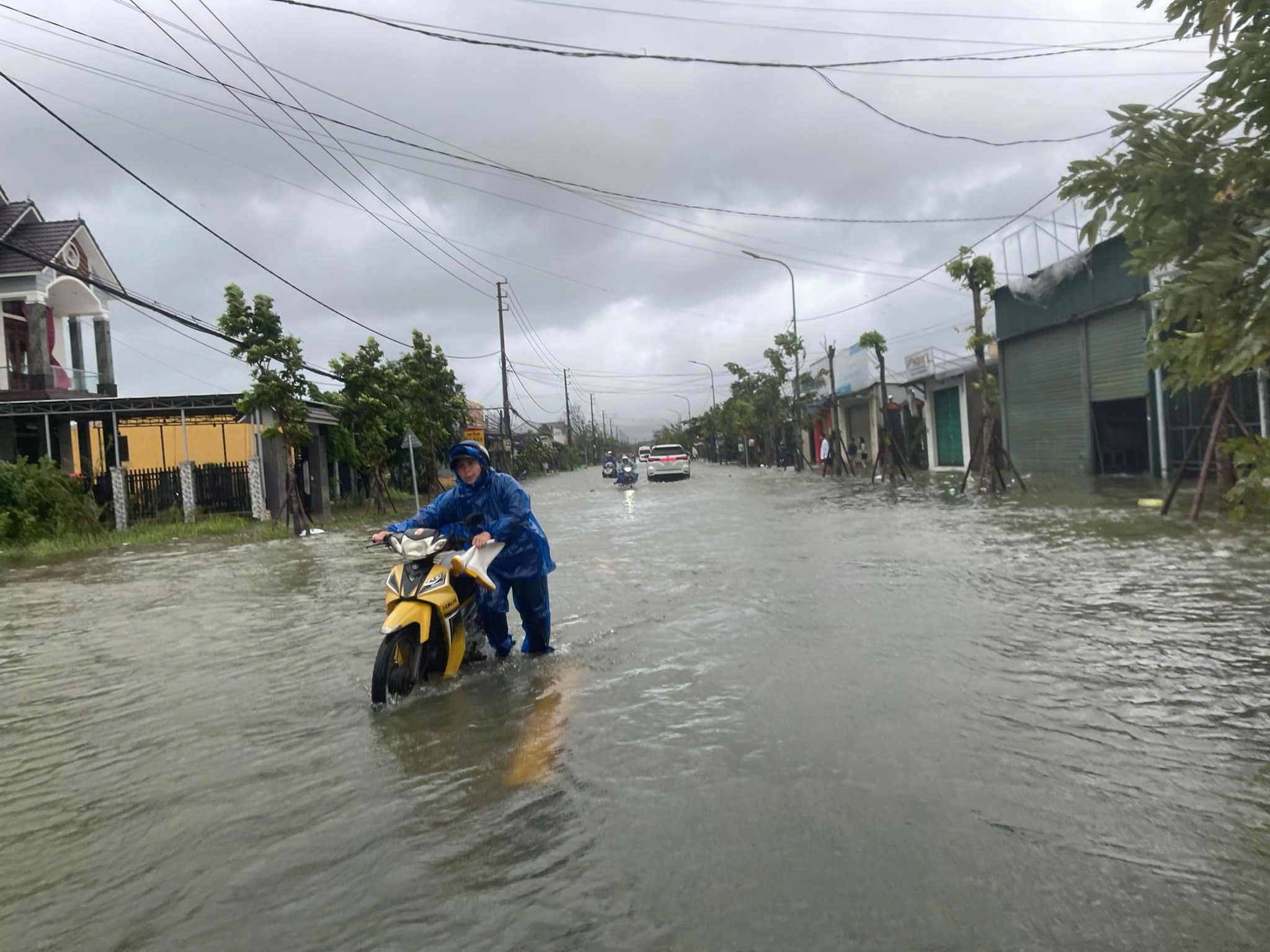 Sau khi vào Thừa Thiên Huế và Đà Nẵng, bão Trami gây gió mạnh, mưa to khiến nhiều nơi bị ngập lụt nhiều tỉnh, thành miền Trung.