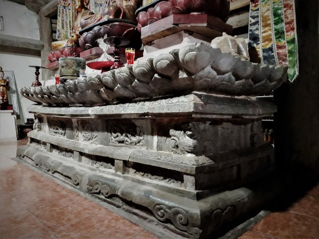Theo nghiên cứu trước đây của cán bộ chuyên môn thuộc Bảo tàng Hùng Vương (Phú Thọ), Bàn thờ Phật bằng đá, hay còn được gọi là Bàn thờ Phật hoa sen , được các cổ nhân chế tác vào năm 1387, thuộc triều đại vua Trần Phế Đế. Các nghệ nhân xưa đã khéo léo ghép 71 phiến đá xanh để tạo nên một bàn thờ bề thế, vững chãi hình chữ nhật cao và rộng hơn 1 m, dài 3,3 m.