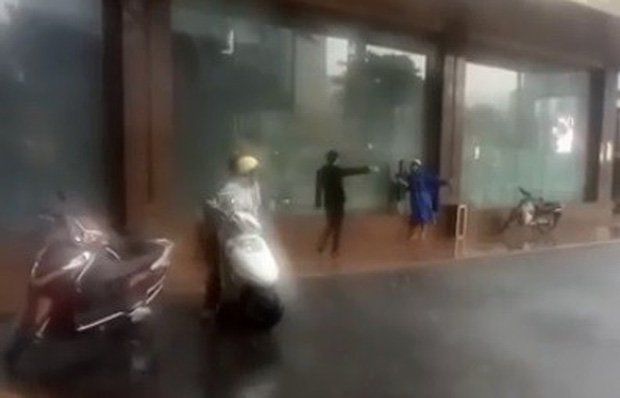 Theo người phụ nữ này, do trời giông bão quá lớn, mưa gió sấm chớp nhiều mọi người sợ hãi nên vội vàng trú vào đây tuy nhiên bảo vệ tòa nhà này nhất quyết đuổi mọi người rời khỏi vị trí.