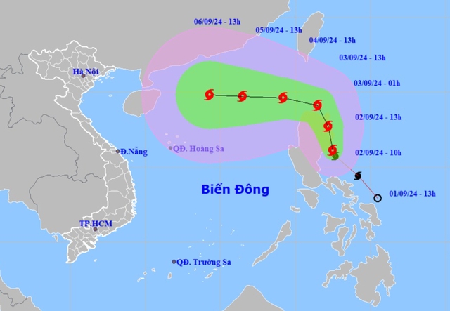 Đến thời điểm này (13 giờ ngày 2-9) các trung tâm dự báo của Việt Nam và quốc tế đều thống nhất khi vào biển Đông bão Yagi sẽ di chuyển chủ yếu theo hướng Tây, cường độ có xu hướng mạnh lên.