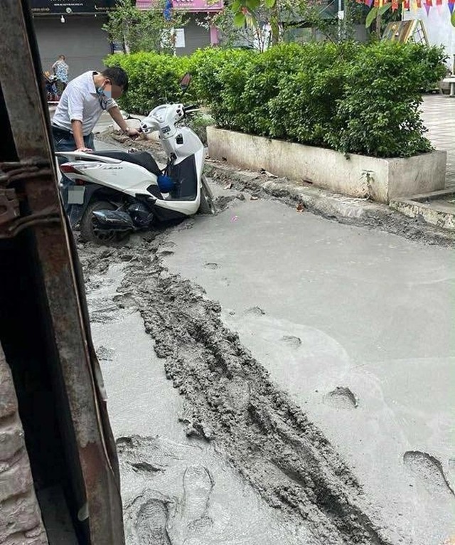 Người dân này chia sẻ thêm, đoạn đường vừa được đổ bê tông vào khoảng 5h sáng. Đến 7h thì sự việc xảy ra, khiến cả khu dân cư phải huy động người và công nhân ra xử lý, đưa xe và người ra khỏi lớp bê tông lên sân chơi bên cạnh, đồng thời tiến hành sửa chữa phần đường bị hư hỏng.