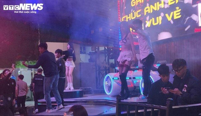 Trên sân khấu, các vũ công trong trang phục "thiếu vải" thực hiện nhiều động tác khiêu gợi. Phía dưới, không ít thực khách trong cơn say xỉn đã lao lên sân khấu nhảy nhót cùng vũ công giữa tiếng hò reo phấn khích.