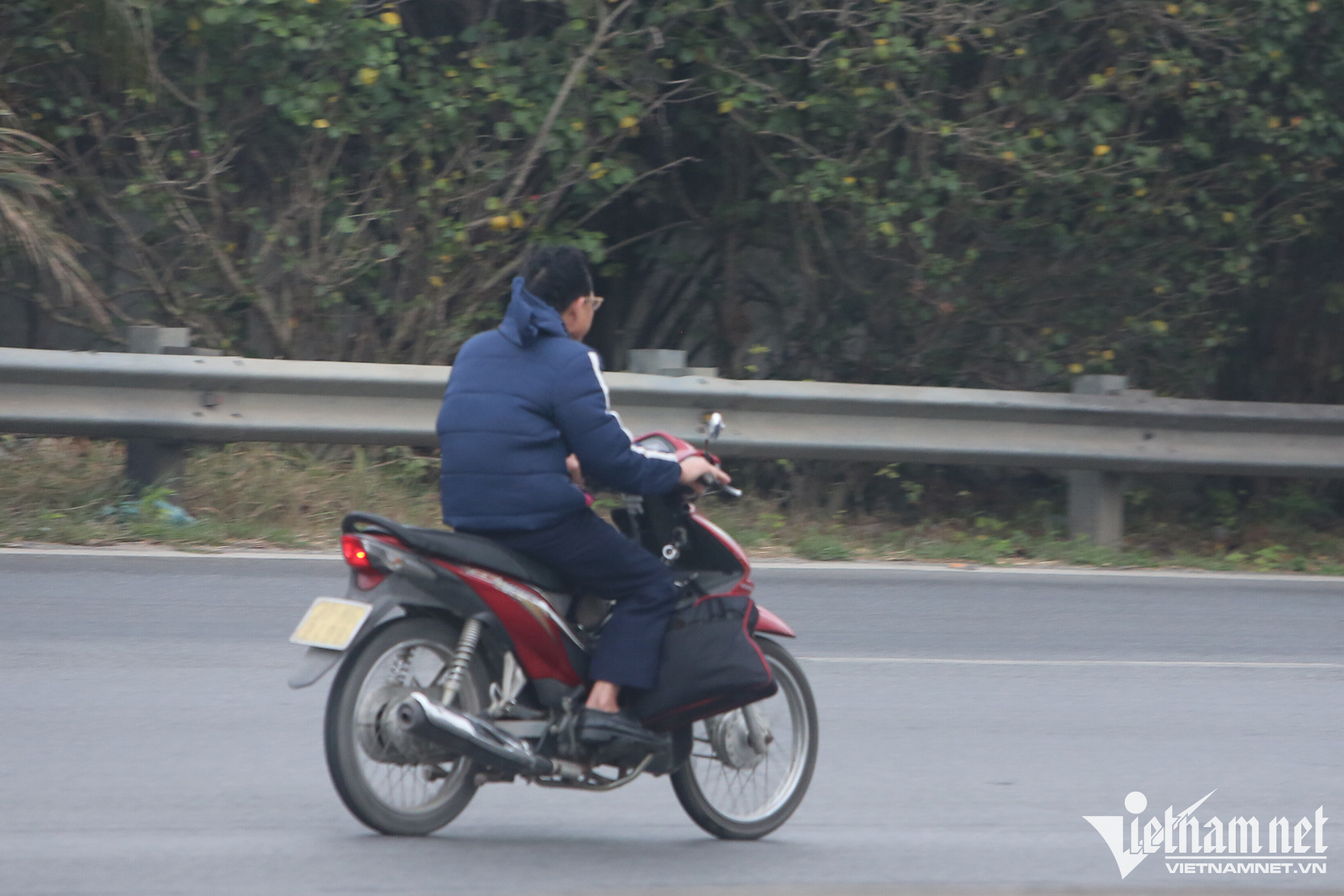 Cũng theo ghi nhận của PV, người tham gia giao thông không chỉ bất chấp nguy hiểm đi xe máy vào cao tốc mà nhiều người còn không đội mũ bảo hiểm hay vừa đi vừa dùng điện thoại.