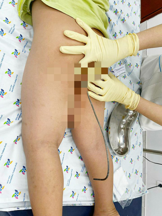 Tại bệnh viện, bác sĩ Nguyễn Thị Cẩm Xuyên và ê kíp mổ cấp cứu khẩn trương nội soi ổ bụng thám sát và thấy đoạn ruột sigma (phần cuối cùng của ruột - PV) bị bầm máu, chưa thấy thủng ruột.