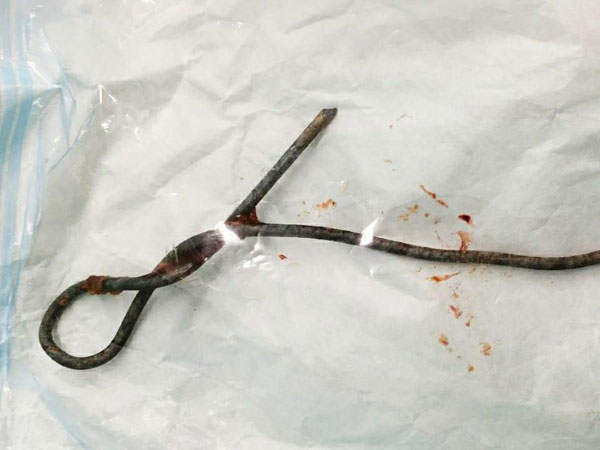 Các bác sĩ kiểm tra hậu môn thì thấy cạnh sắt ghim chặt vào thành sau trực tràng. Kết hợp nội soi ngả bụng và hậu môn, các bác sĩ đã lấy thanh sắt ra ngoài theo ngả hậu môn.