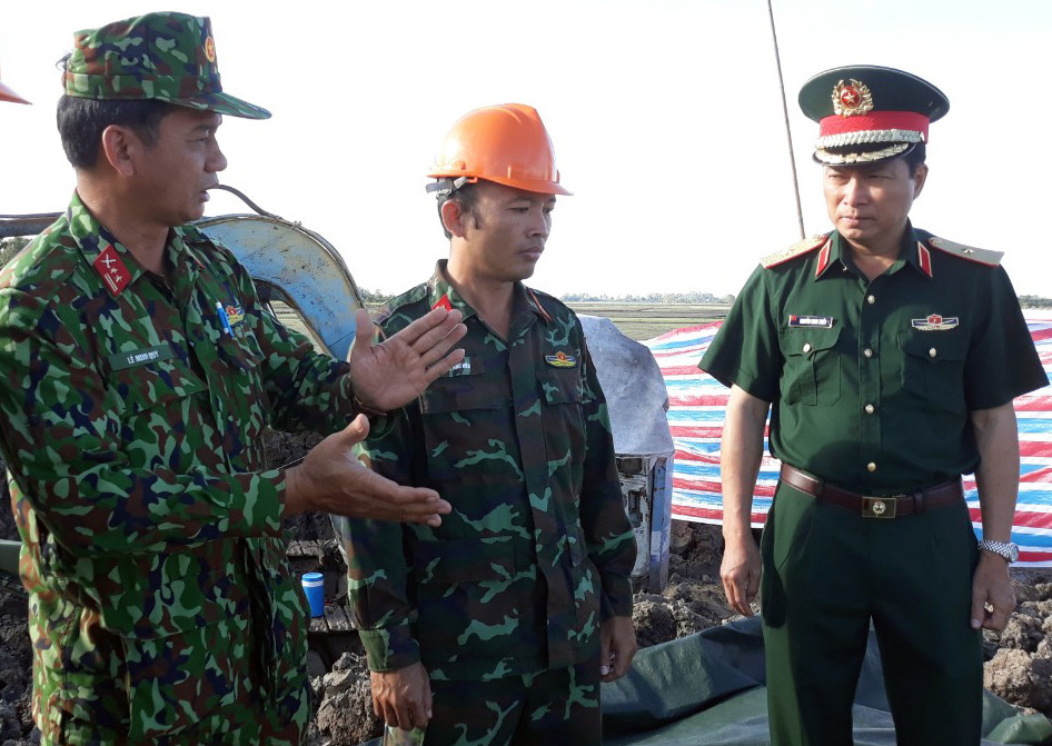 7h30 sáng 4/1, lực lượng Công binh của Quân khu 9 đã thực hiện gắn cáp vào ống cọc bê tông.