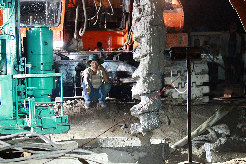 Để đẩy nhanh tiến độ cứu nạn bé trai 10 tuổi rơi xuống ống cọc bê tông ở công trình cầu Rọc Sen (xã Phú Lợi, huyện Thanh Bình, Đồng Tháp), suốt đêm 3/1 đến sáng nay (4/1) lực lượng tại hiện trường khẩn trương dùng phương pháp khoan xoáy nước áp lực lớn tạo độ tơi đất kết hợp khoan guồng xoắn.