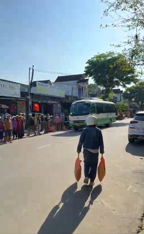 Nội dung clip cho thấy có hàng chục người dân, đa số là người lớn tuổi, người có hoàn cảnh khó khăn, lao động nghèo đã tập trung trước quán cà phê Dưỡng Dướng Dường ở thị trấn Trà My để nhận gạo từ nhân viên quán cà phê và người quen của ông Dưỡng.