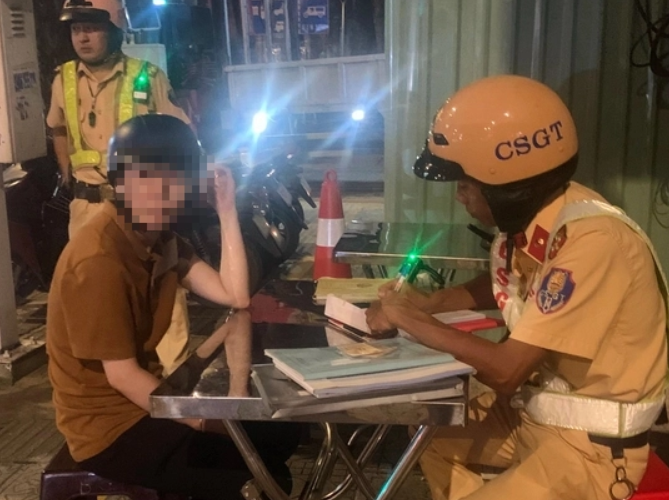 Đáng nói, lúc 23 giờ 20 phút, CSGT phát hiện chị N.T.M.T. (34 tuổi, ngụ quận Bình Thạnh) chạy xe máy có dấu hiệu say xỉn. Do đó, lực lượng chức năng đã ra hiệu dừng phương tiện và yêu cầu kiểm tra nồng độ cồn đối với tài xế này.