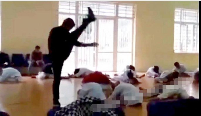 Trong quá trình hướng đẫn các em học sinh khởi động, anh này đã có những động tác ép học sinh tập căng cơ quá sức, gây nên hình ảnh phản cảm không đúng mực.