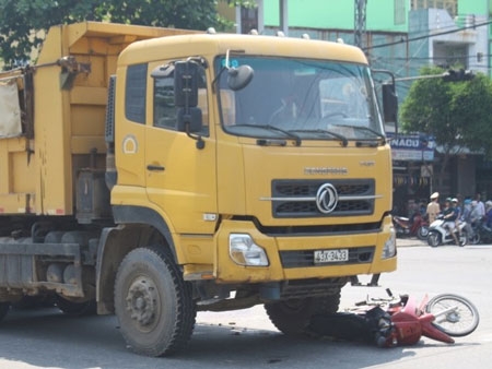 Cú va chạm mạnh khiến 3 nạn nhân và xe máy bị kéo lê dưới gầm phía trước xe ben. Hậu quả, cháu Toàn tử vong tại chỗ, ông Ngộ bị đứt lìa bàn chân, còn chị Diệu bị thương nặng, được người dân đưa vào bệnh viện cấp cứu.
