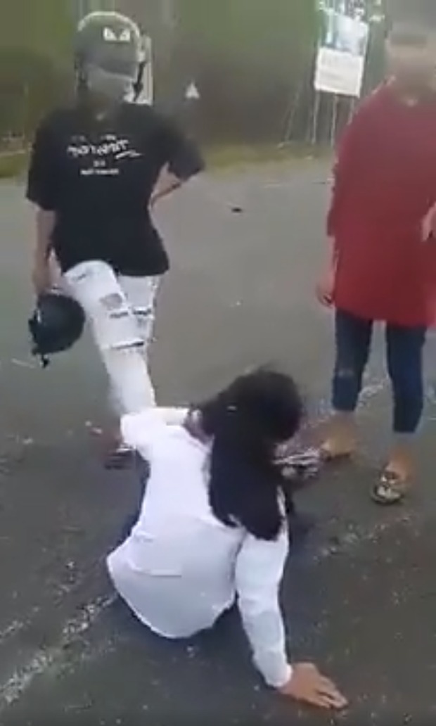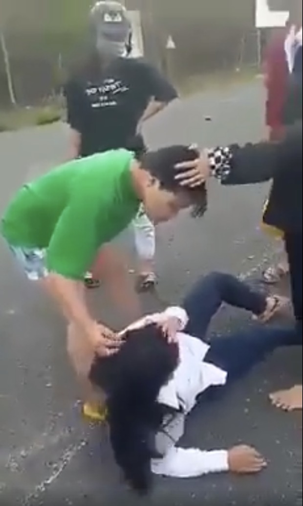 Quá trình đánh đập, 1 thiếu nữ dùng điện thoại quay lại clip. Một thanh niên đi cùng nhóm thiếu nữ đánh đập em N. chỉ đứng xem mà không can ngăn.