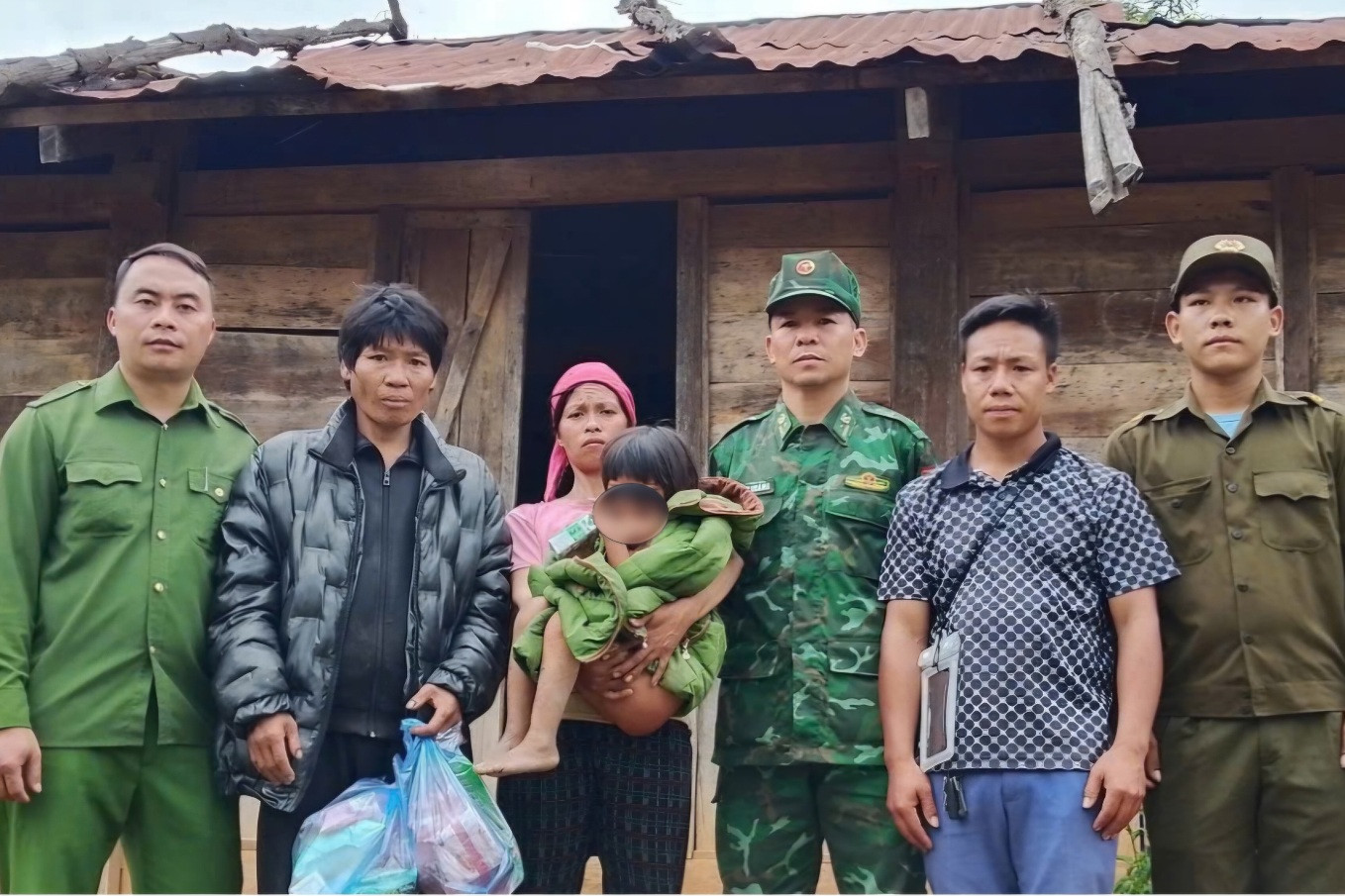 Lực lượng chức năng đã hỗ trợ đưa cháu Phùng Xạ Xô về nhà an toàn và bàn giao cho gia đình trong niềm vui mừng, xúc động.