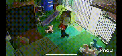 Cô giáo sau đó bế học sinh kia vào bên trong lớp và cất đồ của học sinh vào tủ cá nhân của các cháu. Sau đó, cô giáo này bước vào bên trong phòng mà quên khoá cửa ngoài. Lúc này cháu bé đi thẳng ra ngoài đường.
