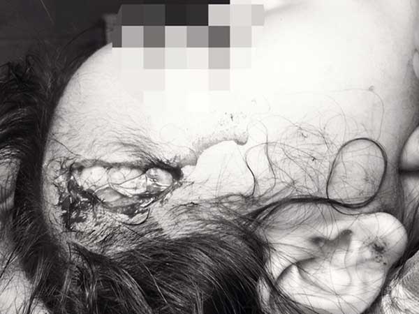 Ngày 13/4, bác sĩ Nguyễn Thị Thu Trang, khoa Ngoại, Trung tâm Y tế huyện Thanh Ba (Phú Thọ) cho biết trung tâm y tế vừa tiếp nhận một bé trai 4 tuổi với vết thương ở thái dương dài khoảng 7 cm, rách lóc da, lộ xương hộp sọ; trán và vùng đỉnh đầu cũng có vết rách sâu sát xương, chảy nhiều máu.