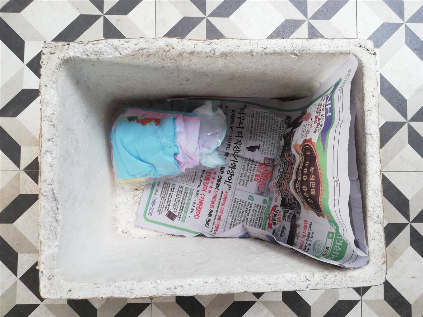 Đó là một bé trai nặng 4,5 kg, được để trong một thùng xốp màu trắng có kích thước 48 cm x 32cm. Cháu bé được quấn khăn vải lông màu xanh, đỏ, đầu đội mũ vải màu vàng. Qua kiểm tra sơ bộ, tình trạng sức khỏe của cháu bé bình thường.