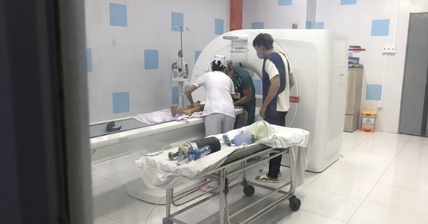 Tại đây, bé T. được chụp CT, kết quả ghi nhận có tụ một khối máu bầm trên não nhưng không nhiều và tiếp tục theo dõi. Khoảng một lát sau, bệnh nhi vẫn tiếp tục ói nên được nhanh chóng chuyển Bệnh viện Nhi đồng 2 cấp cứu.