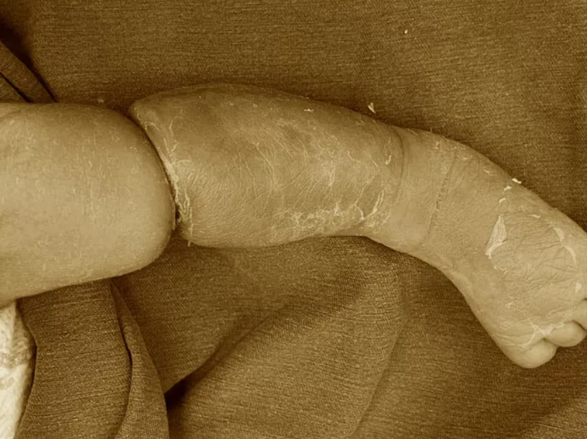 Bệnh viện Nhi Trung ương ngày 22-1 cho biết bé trai C.V.Q. (9 ngày tuổi, ở Sơn La), được gia đình đưa tới bệnh viện Nhi Trung ương trong tình trạng có 1 vòng thắt sâu ở cẳng chân phải. Qua thăm khám, bệnh nhi được chẩn đoán mắc hội chứng vòng thắt bẩm sinh. Theo bác sĩ Lê Tuấn Anh, Phó Trưởng Khoa chỉnh hình nhi, Bệnh viện Nhi Trung ương, hội chứng vòng thắt bẩm sinh rất hiếm gặp với tỉ lệ mắc là 1/1.200 - 1/1.500 trẻ.