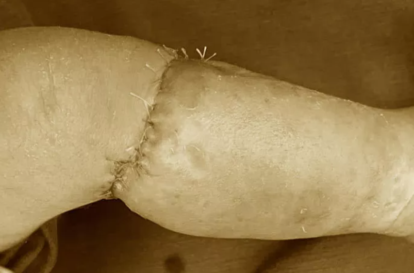Đến nay, sau phẫu thuật, chân bé thoát khỏi vòng siết chặt, các mạch máu nuôi lưu thông tốt, vết mổ khô.