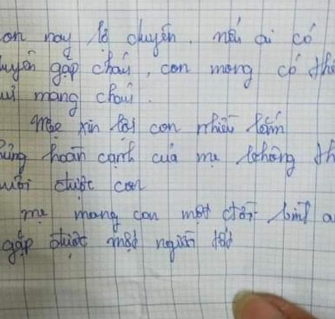 Cháu bé bị bỏ rơi là trai, nặng khoảng 5,8kg, cao 52 cm, mặc áo trắng sọc ngang đen, quấn chăn hoa màu vàng. Trong số đồ dùng để cạnh cháu bé có phong bì đựng 500 nghìn và lời nhắn đã “lỡ duyên” và nhờ ai nhặt được thì nuôi cháu hộ.