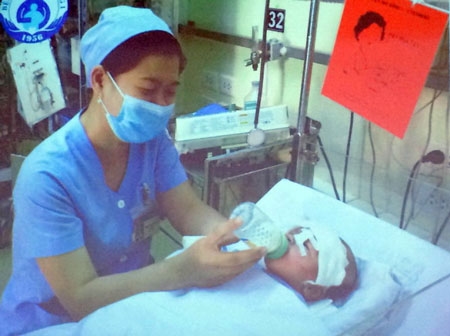 Trong khi đó, bác sĩ Phạm Thị Thanh Tâm - trưởng khoa hồi sức sơ sinh Bệnh viện Nhi Đồng 1 - cho biết hai ngày đầu sau mổ, bé bị những cơn co giật nên phải sử dụng thuốc an thần cho bé ngủ với liều lượng được tính toán rất kỹ. Sáng nay 18-8 bé đã được ngưng thuốc an thần hoàn toàn.