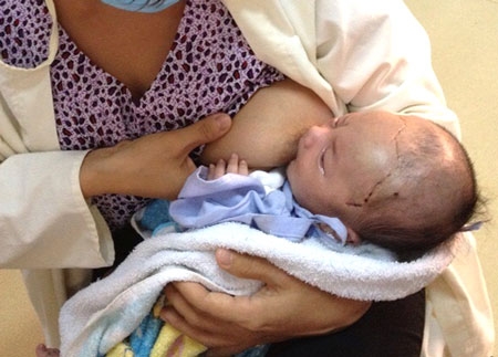 01/09/2015 18:31Bé trai bị đâm xuyên sọ ăn khỏe sau 3 ngày trở về nhà
