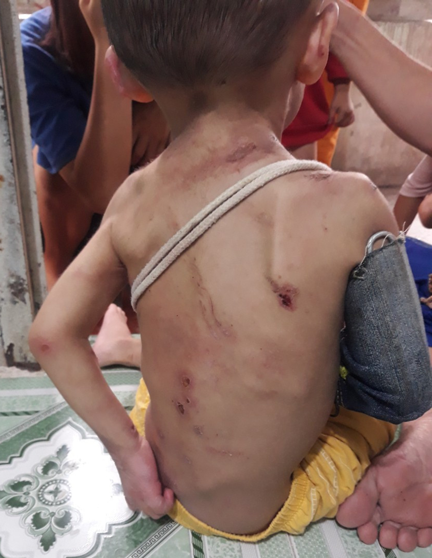 Ngoài ra, chị T. còn phát hiện trên người cháu có nhiều vết thương ở vùng lưng, mặt và một số vết nghi do bị chích tàn thuốc, ngoài ra cháu còn bị gãy tay.