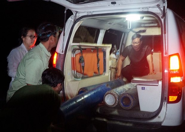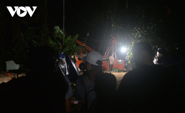 Lực lượng cứu hộ vẫn truyền oxy và truyền nước xuống nhưng chưa thấy nạn nhân dùng đến nước. Các lực lượng vẫn tiếp tục tăng cường bình oxy để xử lý khi cháu bé được đưa lên, xe cứu thương cũng được đưa đến hiện trường.