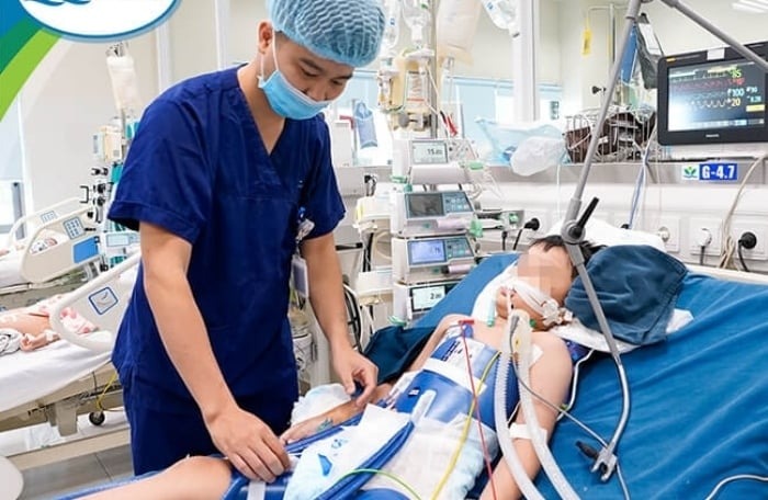 Sau đó, trẻ được chuyển đến bệnh viện huyện trong tình trạng hôn mê, tím tái, thở ngáp, được đặt nội khí quản chuyển đến bệnh viện tỉnh rồi chuyển lên Bệnh viện Nhi Trung ương.