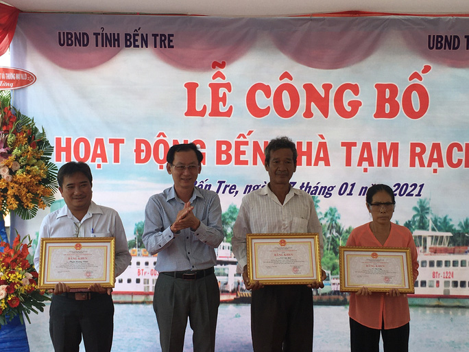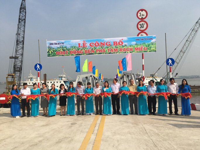 Sáng 27-1, UBND 2 tỉnh Bến Tre và tỉnh Tiền Giang làm lễ công bố cho hoạt động bến phà tạm Rạch Miễu. Ngay sau đó, những chiếc phà đầu tiên đã khởi hành từ bờ Bến Tre sang Tiền Giang.