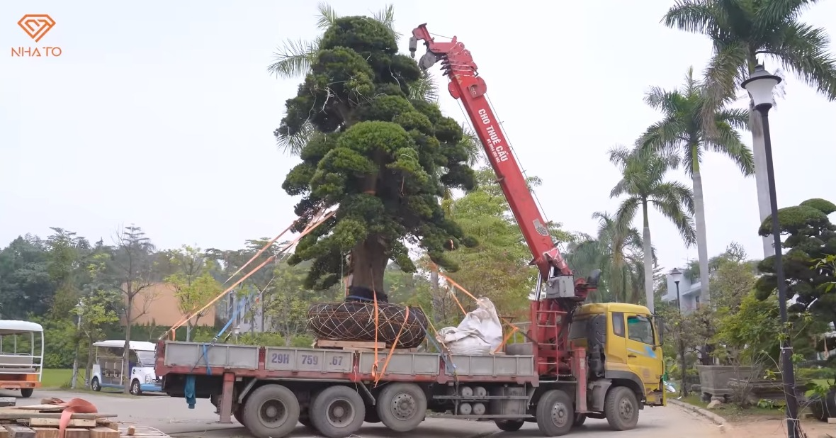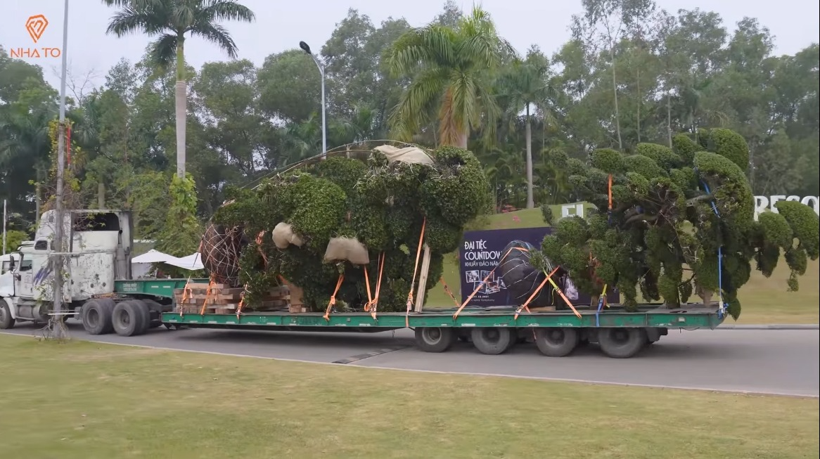 Rất nhiều cây cổ thụ được gia chủ dùng cả xe container để chuyển về. Trong đó có một cây với phần thân có đường kính hơn 1m, cao hơn 6m và có tuổi thọ hơn 700 năm. Gia chủ gọi đây là cây Thái Thượng Hoàng vì tuổi đời lâu năm nhất trong khuôn viên sân vườn.
