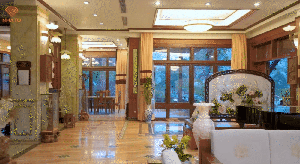 Biệt thự trong bài này thuộc sở hữu của một vị phó chủ tịch đã bước vào tuổi U70, theo Hoàng Đức - kênh Nhà To. Gia chủ có một đam mê mãnh liệt với hoa sen, cây cổ, đá quý... Vậy nên chỉ riêng khuôn viên sân vườn trong căn biệt phủ này đã tập hợp rất nhiều cây quý tuổi đời hàng trăm năm và các khối ngọc, đá quý giá trị hàng tỷ đồng.