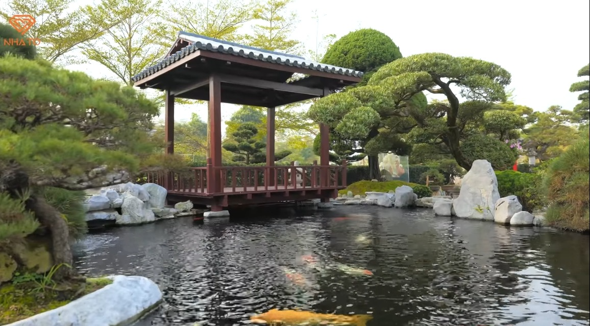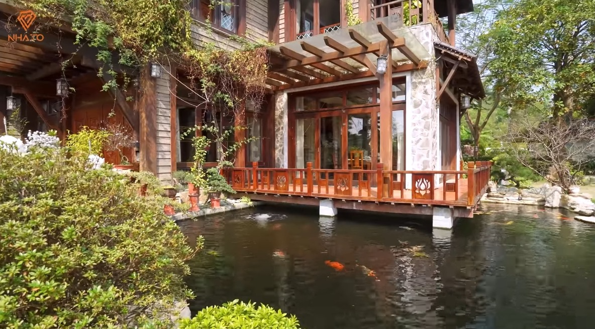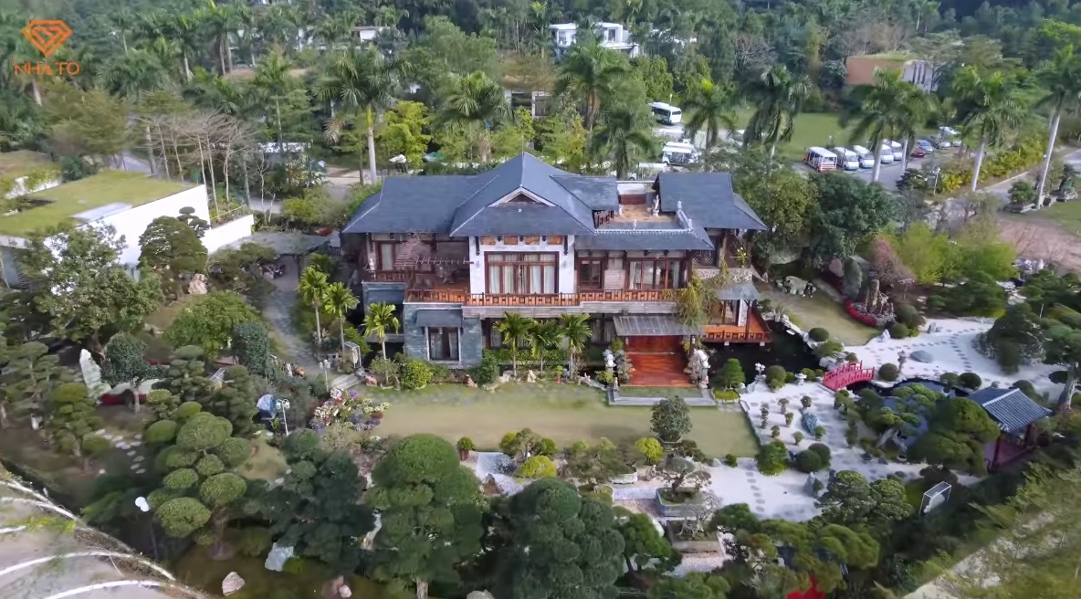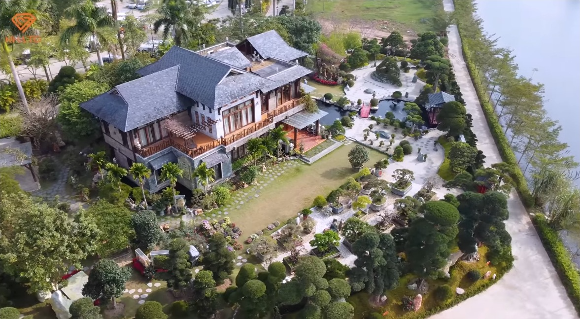 Tổng diện tích biệt phủ lên tới 3000m2, bao gồm nhà ở, vườn Nhật và hồ cá Koi. Trong khuôn viên sân vườn, mỗi cây cổ thụ như thông, tùng la hán… đều được phó chủ tịch đặt những cái tên và có ý nghĩa riêng như: cây Vua, cây Hoàng Hậu, cây Hoàng Tử, cây Công Chúa, cây Thừa Tướng... Thậm chí có cả cây cổ thụ lên tới 700 năm tuổi, được gia chủ chuyển từ Nhật về và chăm chút trong sân vườn của ông. Nghe tên gọi mà tưởng như đang lạc bước trong phim "cung đấu".