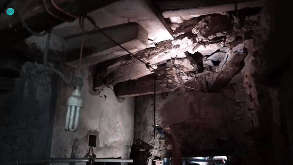 Phía trong căn nhà đem lại cảm giác ngôi nhà có thể sập bất cứ lúc nào bởi lối xây dựng không theo bất kì trật tự. "Bên trong như hang động, không theo đường lối nào. Sắt thép và vôi vữa để lung tung", chủ kênh YouTube Độc Lạ Bình Dương nhận xét về không gian bên trong căn nhà.