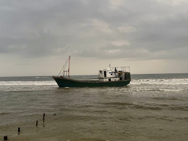 Theo đó, lúc 4 giờ 30 phút cùng ngày, người dân phát hiện chiếc tàu trên dạt vào bờ biển thôn 5 (xã Triệu Lăng), nên đã báo cáo Đồn Biên phòng Triệu Vân.